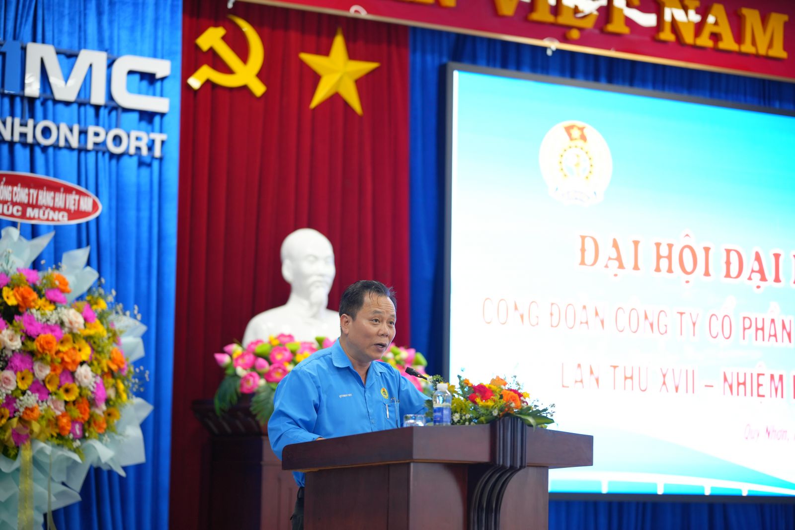Tại Đại hội, đồng chí Mai Lê Lợi - Chủ tịch Công đoàn Tổng công ty Hàng hải Việt Nam đã ghi nhận và đánh giá cao những nỗ lực của Công đoàn Cảng Quy Nhơn trong nhiệm kỳ vừa qua. Đồng chí nhấn mạnh: “Chính từ những khó khăn ấy, bản lĩnh, ý chí đoàn kết quyết tâm vượt khó của tập thể lãnh đạo, cán bộ, người lao động Cảng Quy Nhơn lại được bộc lộ rõ nét hơn bao giờ hết.”