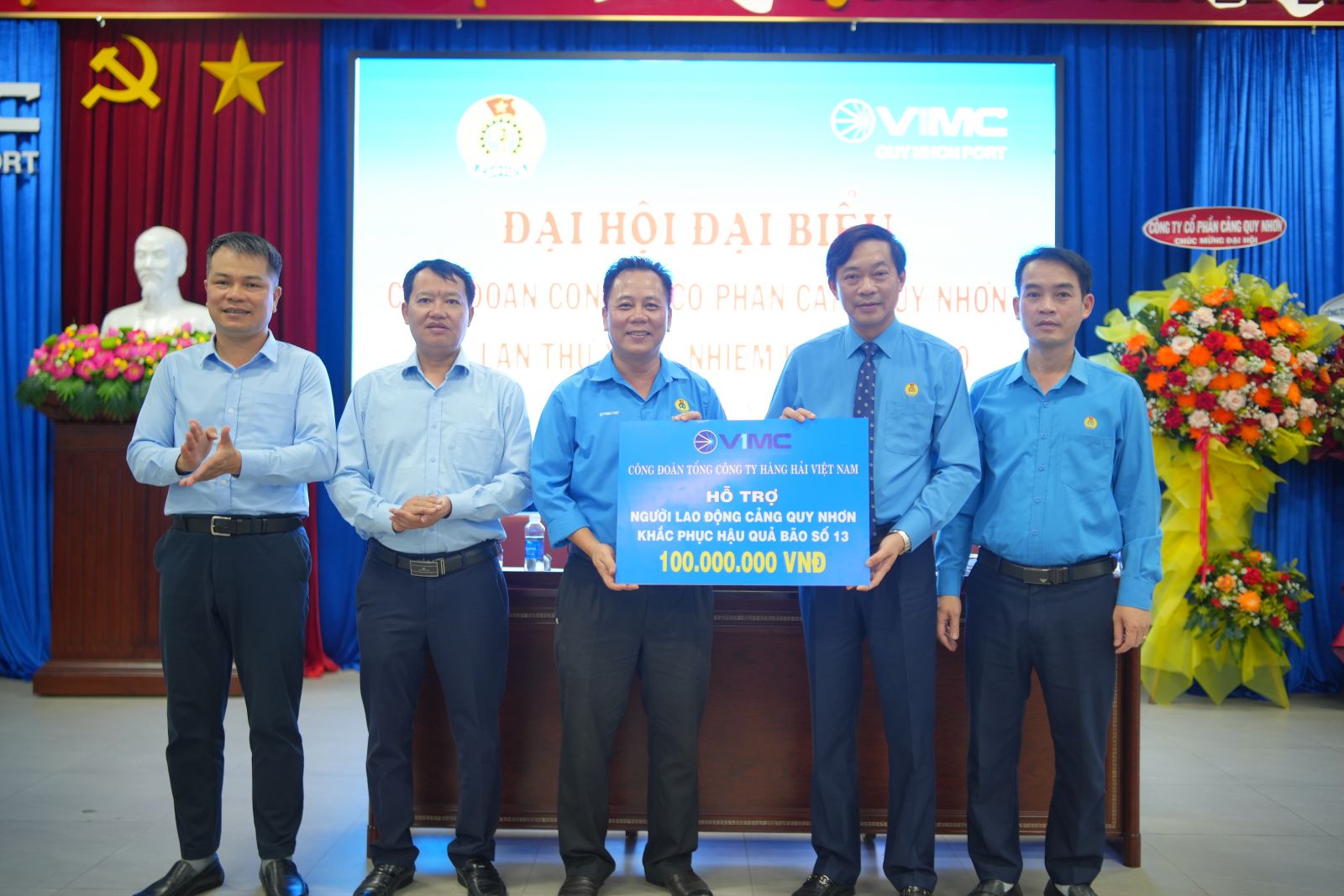 Tại Đại hội, đồng chí Mai Lê Lợi đã trao tặng số tiền hỗ trợ 100 triệu đồng cho người lao động Cảng Quy Nhơn bị ảnh hưởng do cơn bão số 13 gây ra. Đây là sự quan tâm sâu sắc, thể hiện tình cảm, trách nhiệm và sự đồng hành của tổ chức Công đoàn đối với đội ngũ đoàn viên, người lao động Cảng Quy Nhơn.