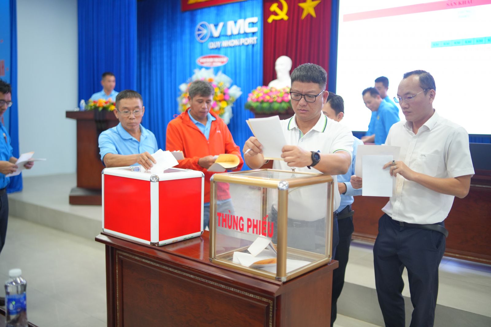 Đại hội đã bầu Ban Chấp hành Công đoàn Công ty cổ phần Cảng Quy Nhơn khóa XVII, nhiệm kỳ 2025 - 2030 gồm 11 đồng chí – những đồng chí đủ năng lực, uy tín và tâm huyết sẽ dẫn dắt Công đoàn thực hiện thắng lợi Nghị quyết Đại hội, góp phần quan trọng vào sự phát triển bền vững của Cảng Quy Nhơn và Tổng công ty Hàng hải Việt Nam.